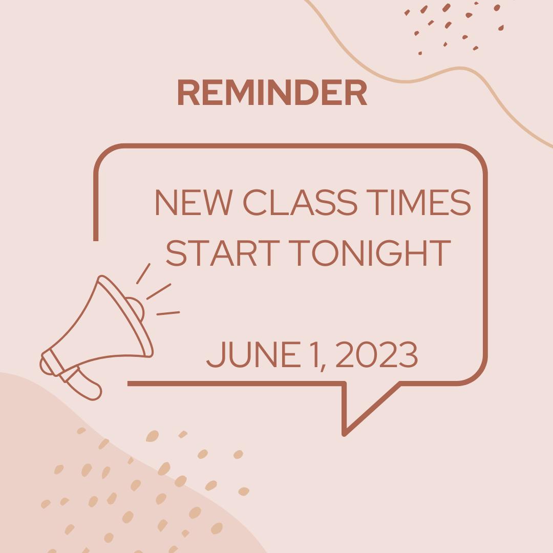 All 6:30pm Gymnastics class times are now 6:00pm